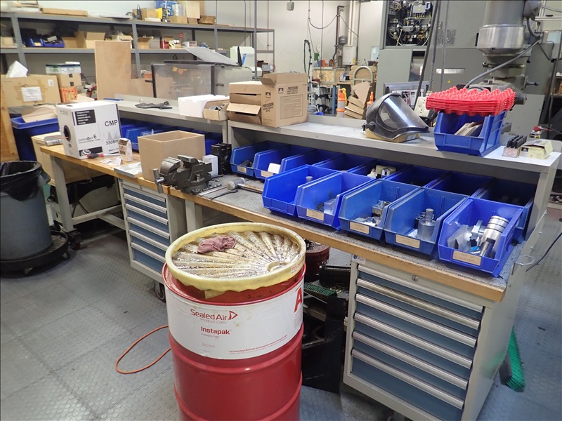 (2) LISTA 72" TOOLING BENCHES W/CABINETS & SHELF UNITS ON CASTERS
