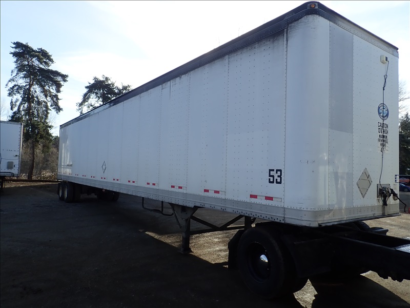 53' T/A VAN TRAILER. SLIDING AXLES, AIR SUSPENSION, AHS HYDRAROLL PNEUMATIC CARGO ROLLERS