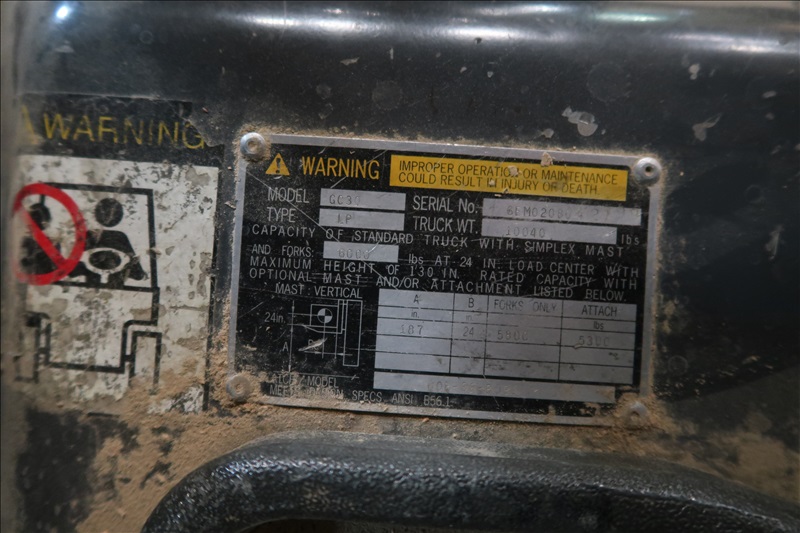 5,800 LB. CAP. FORKLIFT, PROPANE, 187" 3-STAGE MAST, SIDE SHIFT, 42" FORKS, SOLID TIRES
