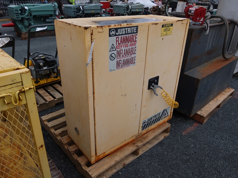 LOT, (1) JUSTRITE SURE GRIP EX 30-GAL CAP FLAMMABLE LIQUIDS STORAGE CABINET (NO KEY), & (1) ABSORBENT SPILL KIT DRUM ON THIS PALLET