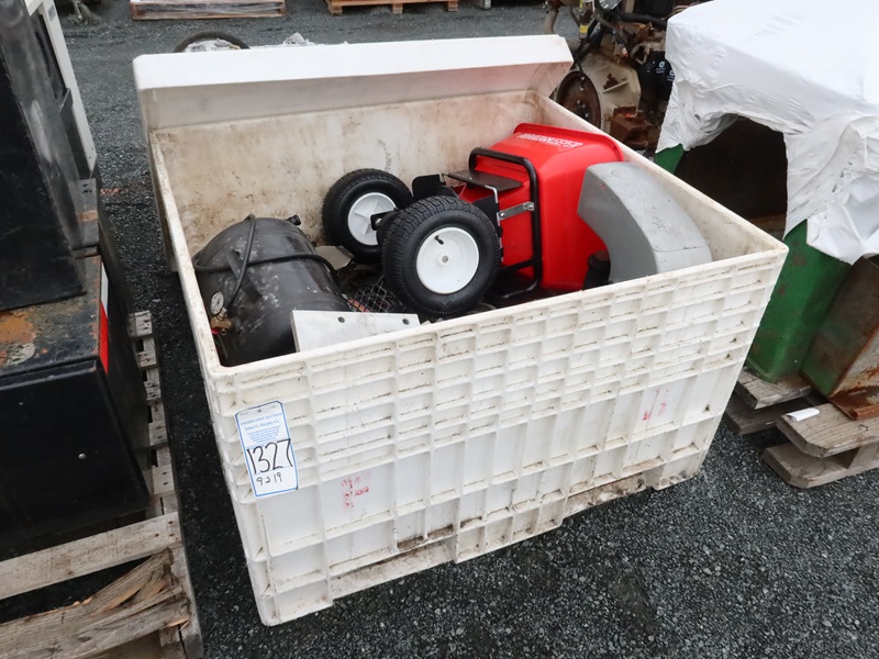 LOT, ASSORTED CONTRACTORS TOOLS & SUPPLIES IN TOTE W/LID
