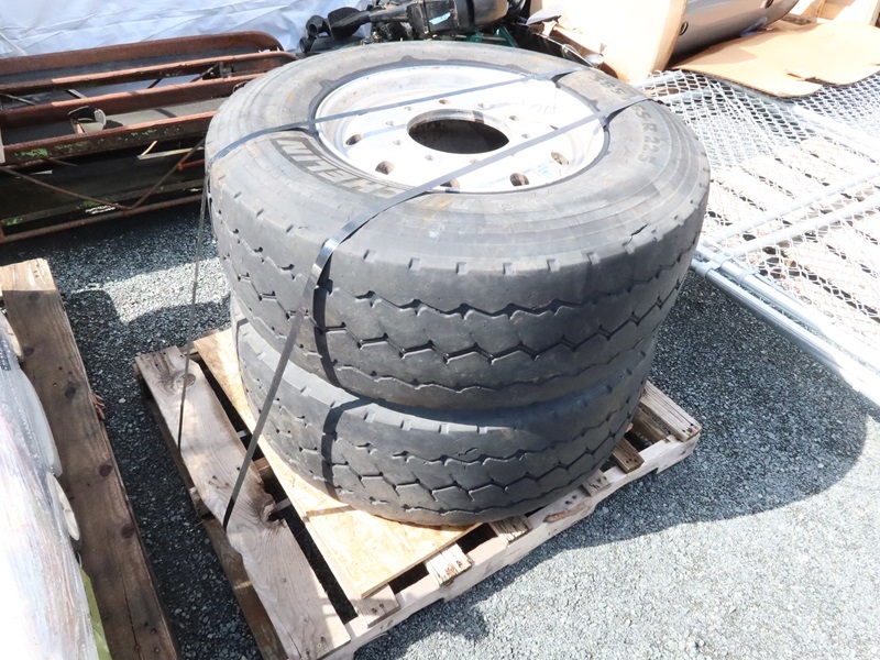 LOT, (2) 385/65R22.5 MOUNTED TIRES ON THIS PALLET