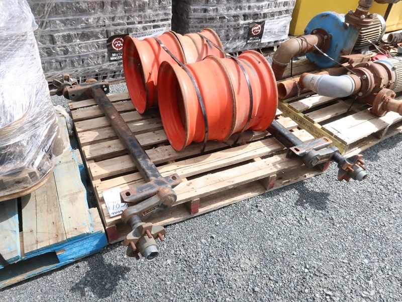 LOT, (4) 17" BOBCAT WHEELS & (2) 3,500 LB AXLES