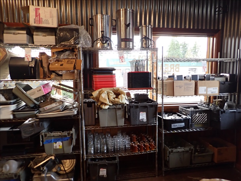 LOT, ASSORTED RESTAURANT SUPPLIES & EQUIPMENT ON THIS RACK W/RACK