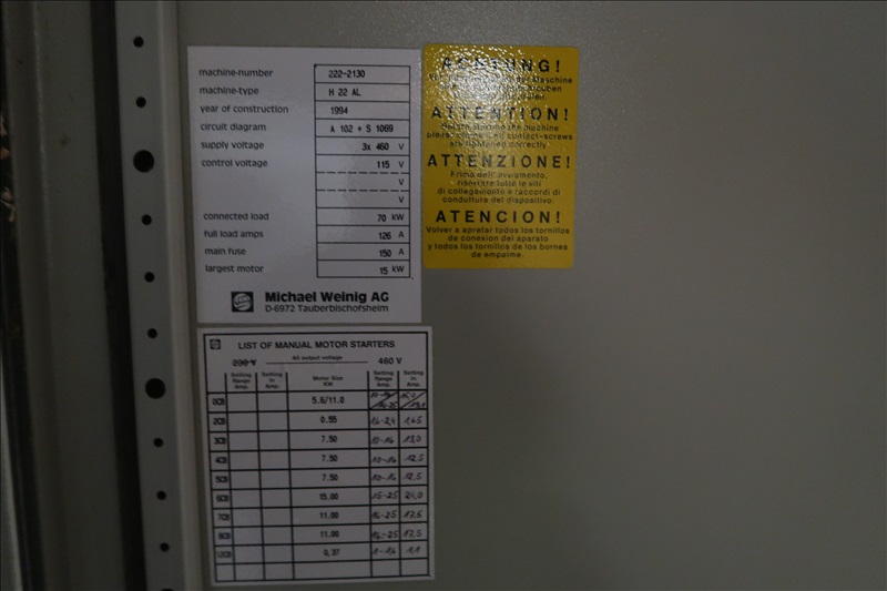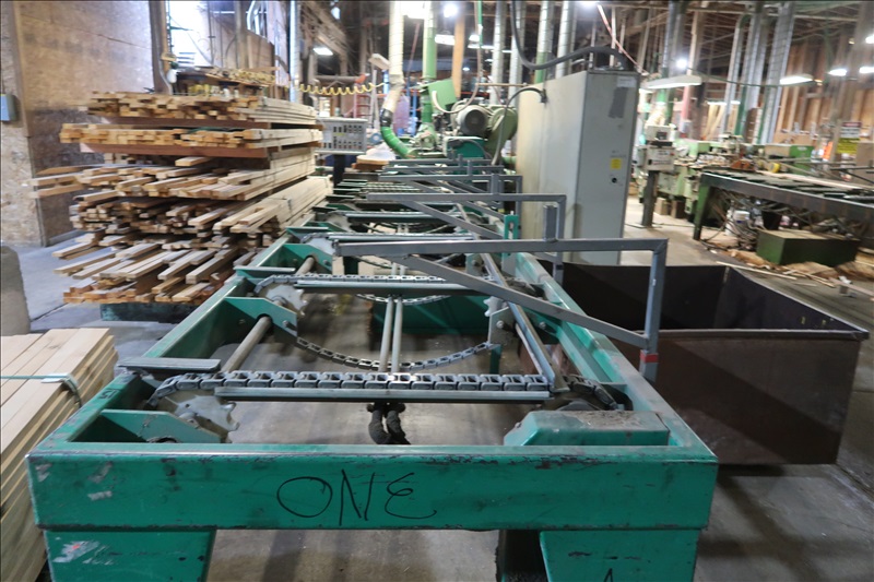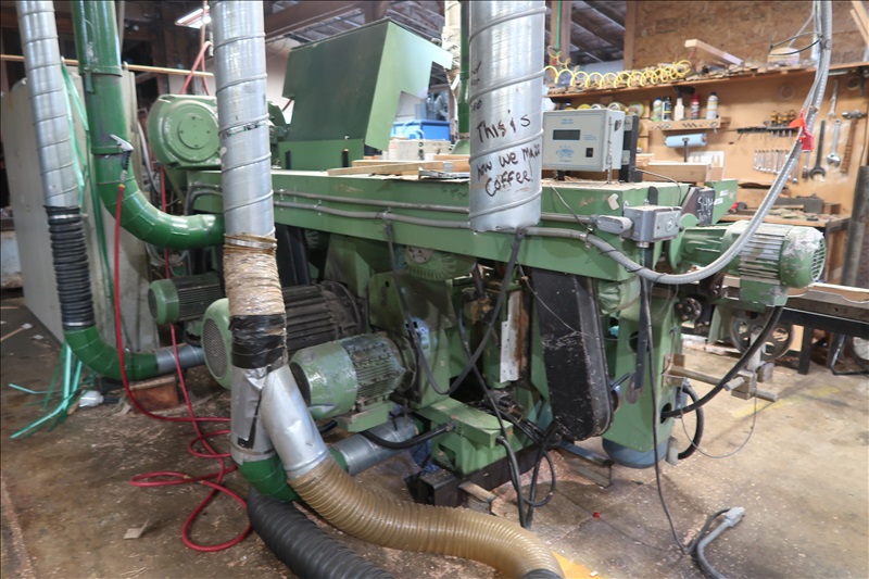 6-HEAD MOULDER, 4-3/4"X8-5/8" CAPACITIES, BOTTOM/SIDE/SIDE/TOP/BOTTOM/UNIVERSAL HEAD CONFIGURATION W/APPROX. 7-1/2 HP TO 25 HP MOTORS, 3'X15' TRIPLE HEAD MOULDER FEED TABLE W/H78 POLY CHAIN & HYDRAULIC UNIT, LINEAR GAUGE, CONTROLS, ELECTRICS, SPARE HEADS (MOULDER #1)
