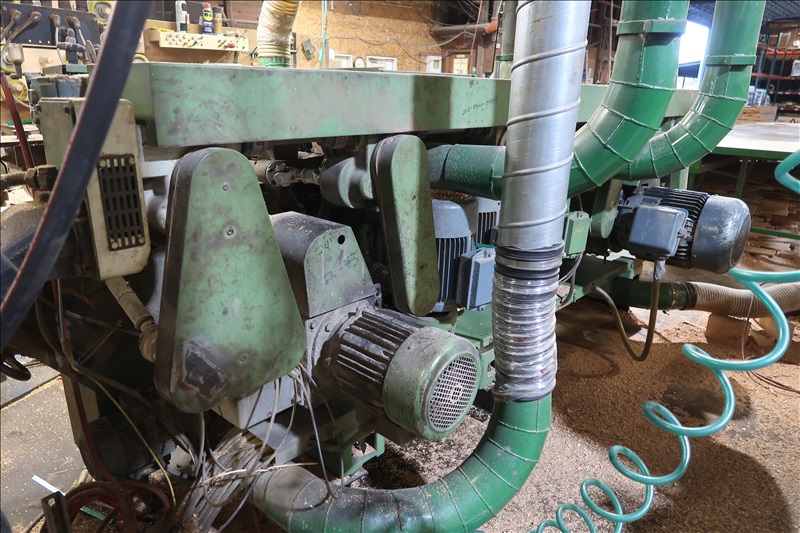 6-HEAD MOULDER, 4-3/4"X8-5/8" CAPACITIES, BOTTOM/SIDE/SIDE/SIDE/TOP/BOTTOM HEAD CONFIGURATION W/APPROX. 7-1/2 HP TO 25 HP MOTORS, 3'X15' TRIPLE HEAD MOULDER FEED TABLE W/H78 POLY CHAIN & HYDRAULIC UNIT, LINEAR GAUGE, CONTROLS, ELECTRICS, SPARE HEADS (MOULDER #2)