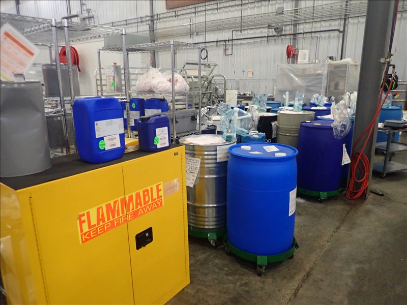 CURING RACKS, TRAY RACKS, SHELTER, FLAMMABLE CABINET, FANS, SCALES, POTS, WASH STATIONS, DRUM CARTS, PALLET JACKS & MISC.