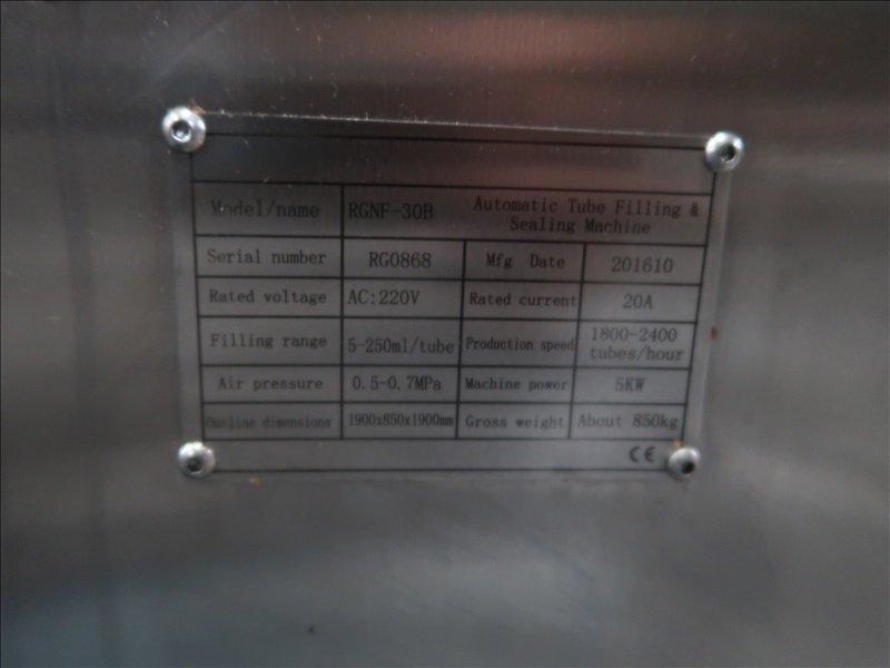 SEMIAUTOMATIC TUBE FILLER & SEALER, VSD OUTFEED CONVEYOR, CA1.5 CHILLER & ROLL CONVEYOR