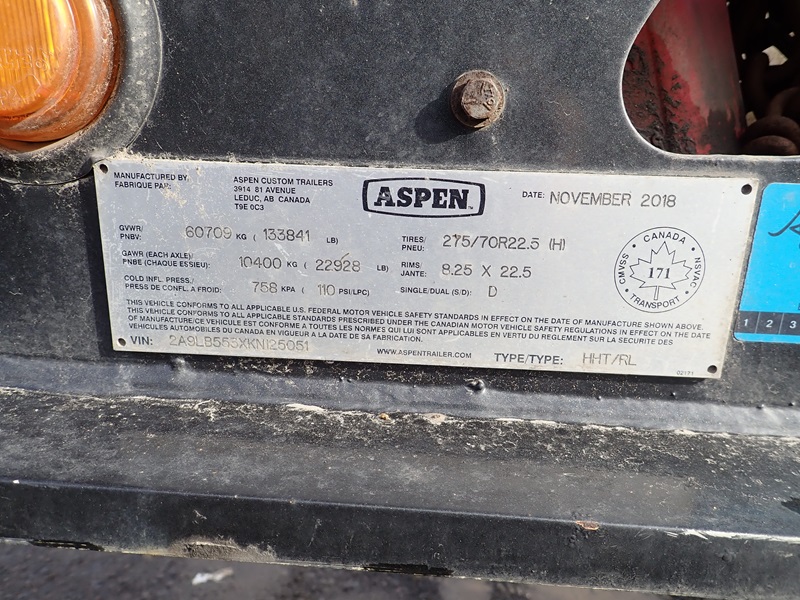 55 TON TRI-AXLE DETACHABLE NARROW NECK LOWBOY, 8' 6''X24' 6'' DECK, OUT RIGGERS, SELF CONTAINED POWER UNIT, 2019 ASPEN LDD/CRC S/A BOOSTER, S/N:2A9LB553XKN125051 (LOWBOY); S/N:2A9TD1010KN125052 (BOOSTER)