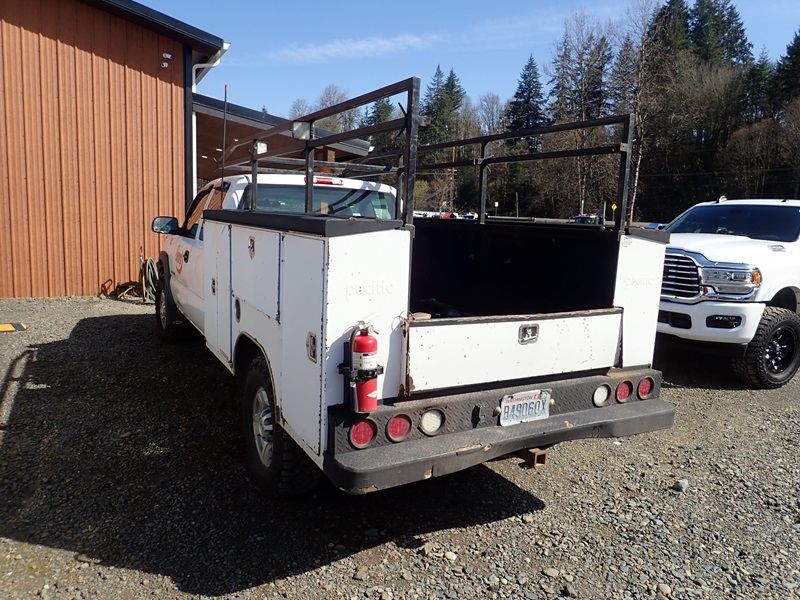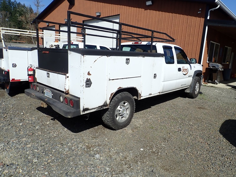 EXTENDED CAB SERVICE BODY TRUCK, V8, AUTO, RACK, 8' BODY