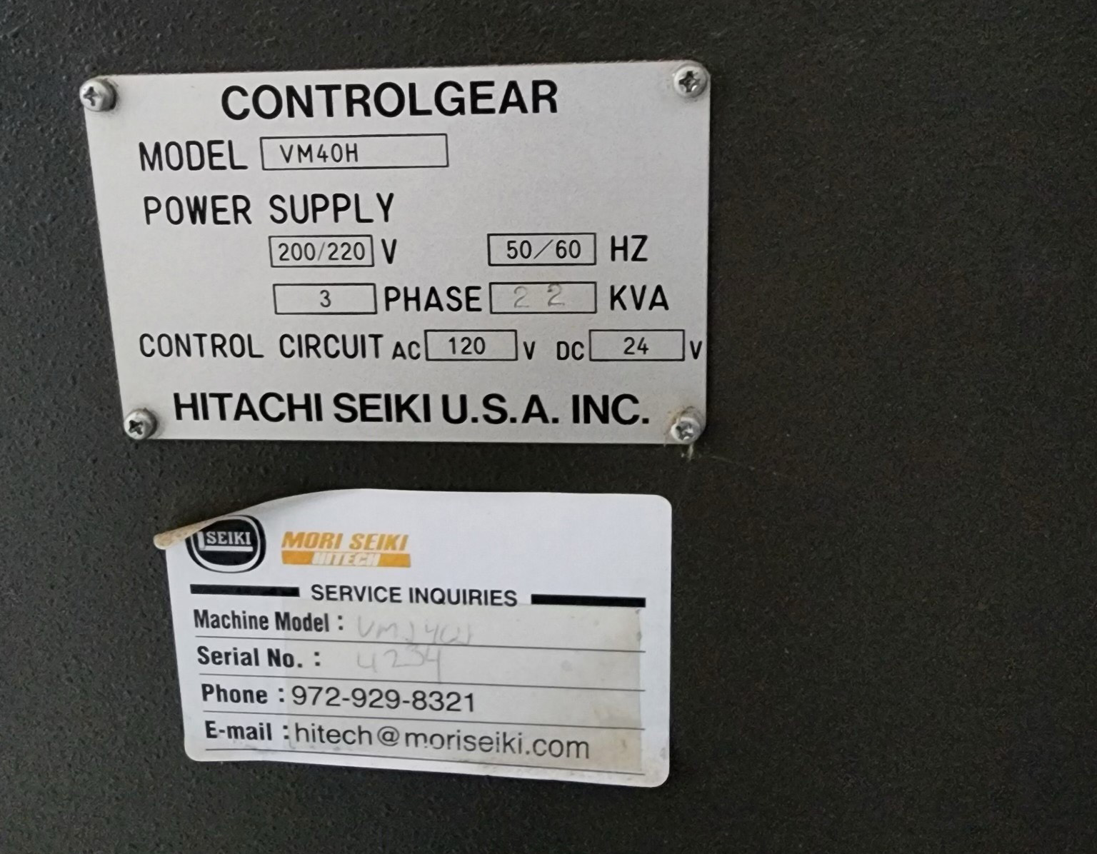 VERTICAL MACHINING CENTER W/20-TOOL POSITIONER, X=22", Y-16", Z=16", CAT 40 SPINDLE, 30"X16" TABLE SIZE, 807 LB. CAPACITY, 7-1/2 HP SPINDLE, 6,000 RPM SPINDLE SPEEDS, CHIP CONVEYOR (TOOLING SOLD SEPARATELY)