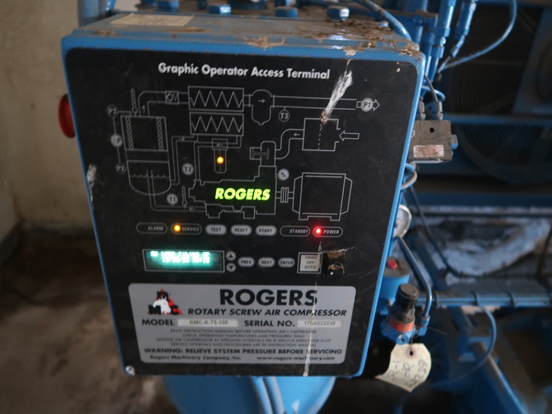 ROTARY SCREW COMPRESSOR W/75 HP MOTOR, AIR COOLED, ATTACHED STARTER (NOT DISMANTLED)