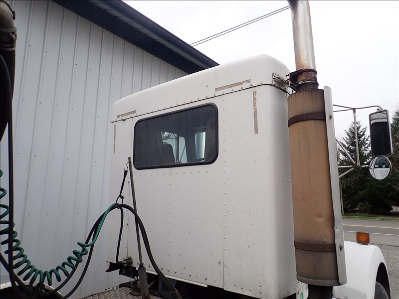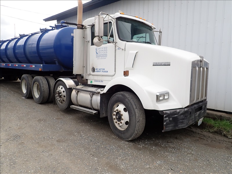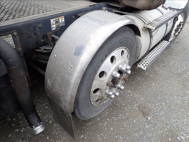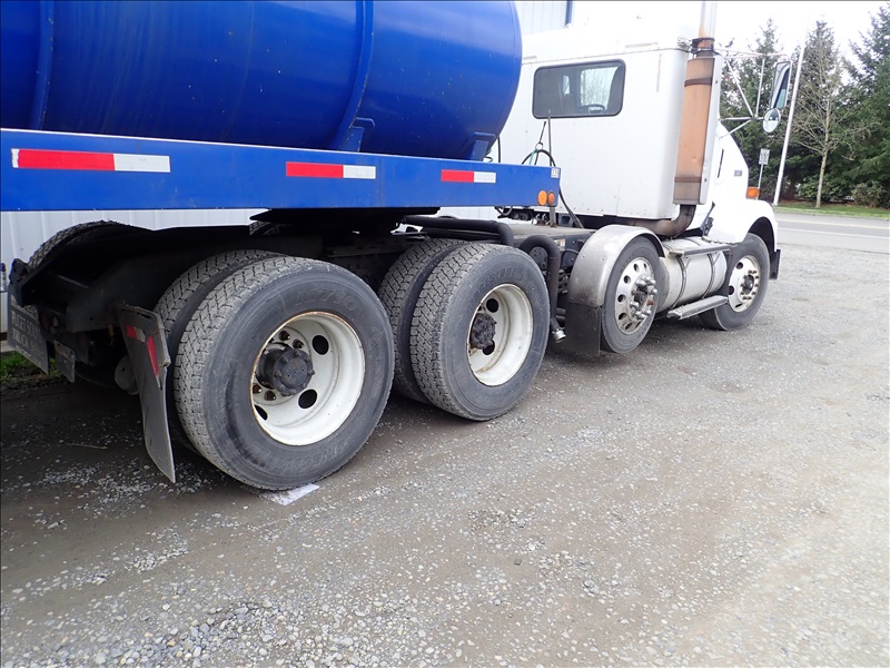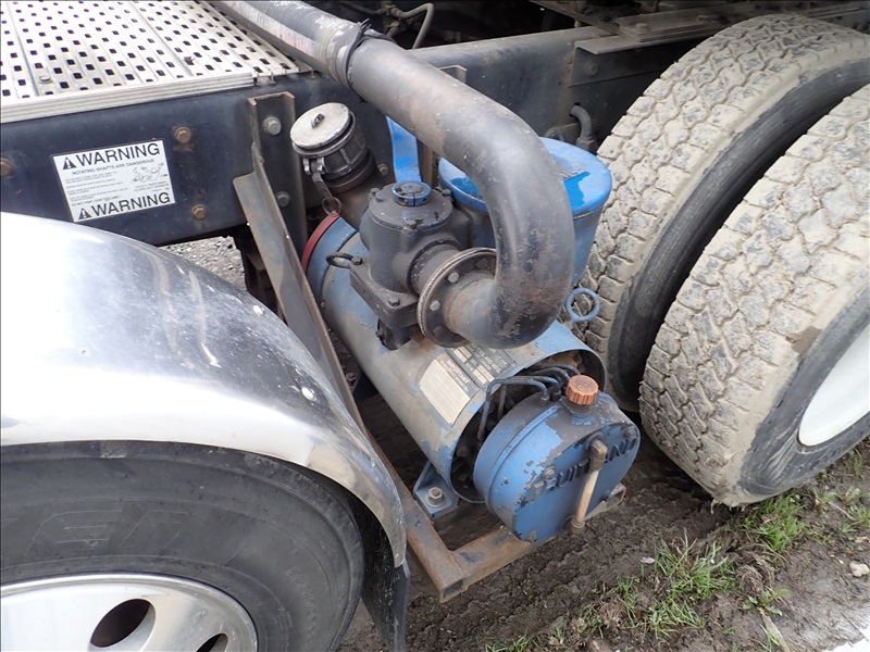 TRI-AXLE TRUCK TRACTOR, CAT C12 380 HP, RTL014610B 10-SPD, DS404 40,000 REARS W/4.11 RATIO, PTO, FRUITLAND 525 CFM PUMP, 8-BAG SUSPENSION, DROP AXLE, LOWBOY RAMPS