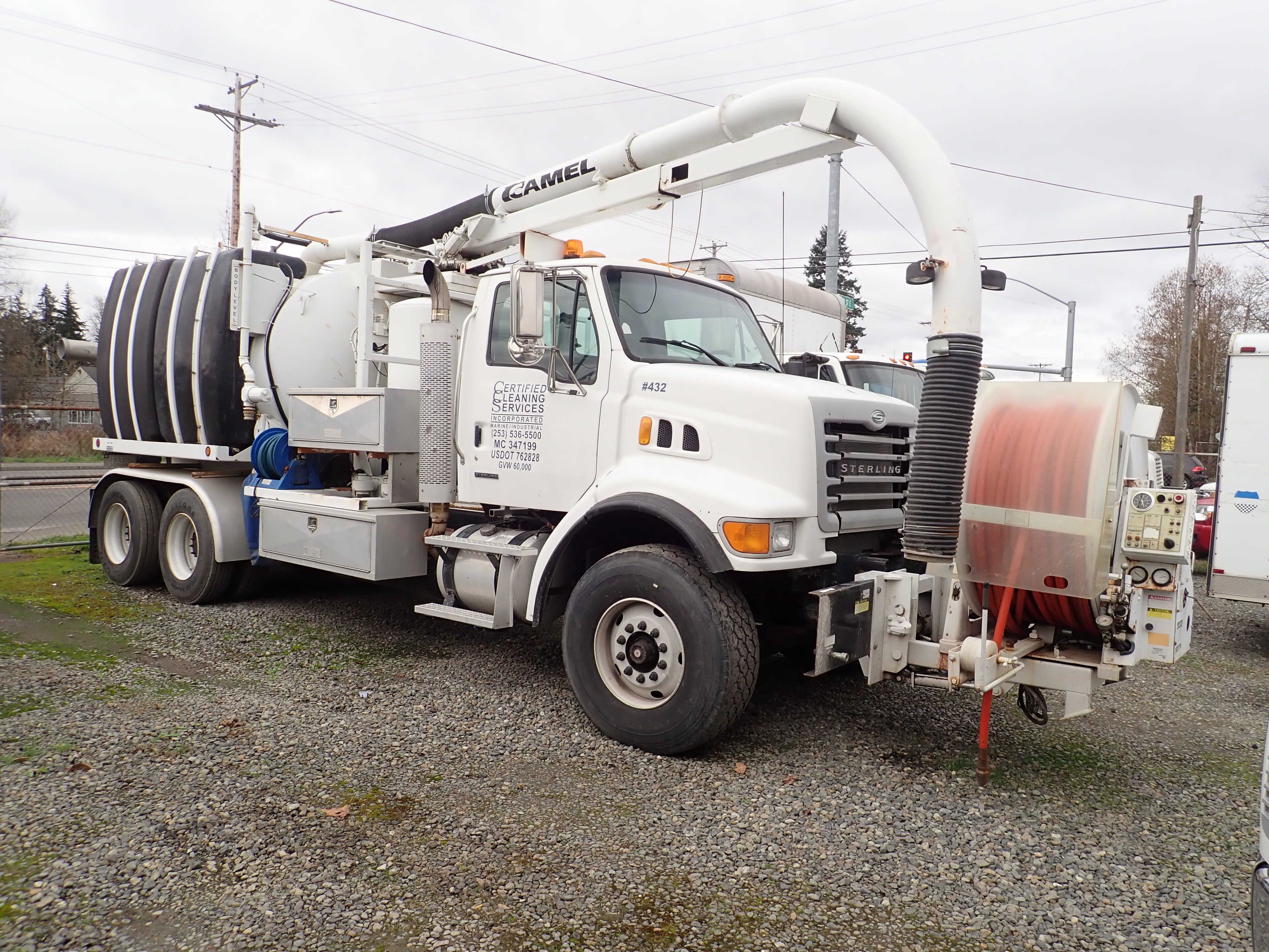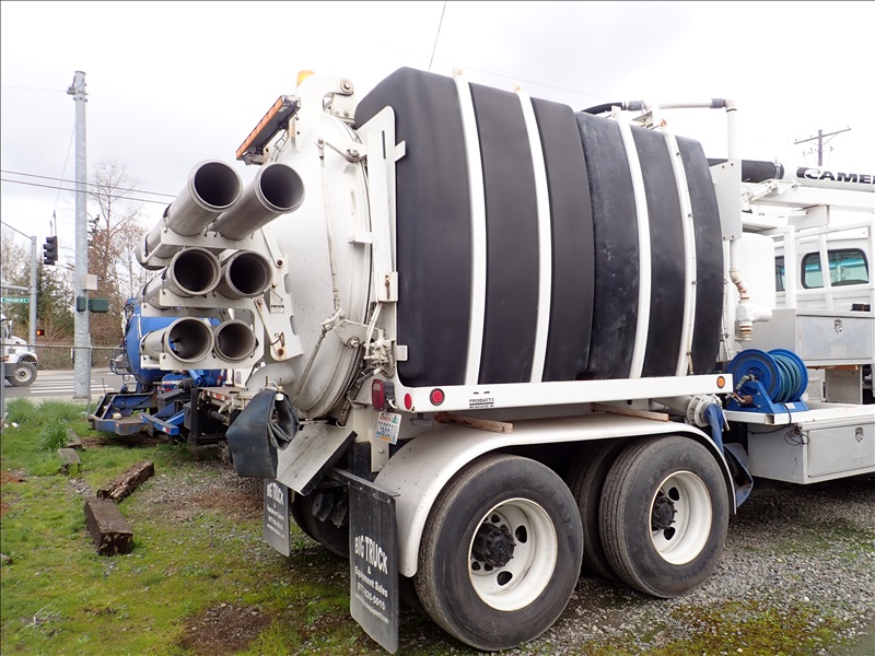 TANDEM AXLE HYDRO EXCAVATOR VACTOR TRUCK, CAT C7, AUTO, CAMEL SUPERIOR 2,000 GALLON BARREL, 1,000 GALLON WATER TANK, SUPERIOR TRIPLEX PUMP, PRESSURE WASHER, BOOM, SPRING BOOM SUSPENSION, DOUBLE FRAME, ROOTS BLOWER, 624 RAM AIR, 40,000 REARS, 20,000 FRONT