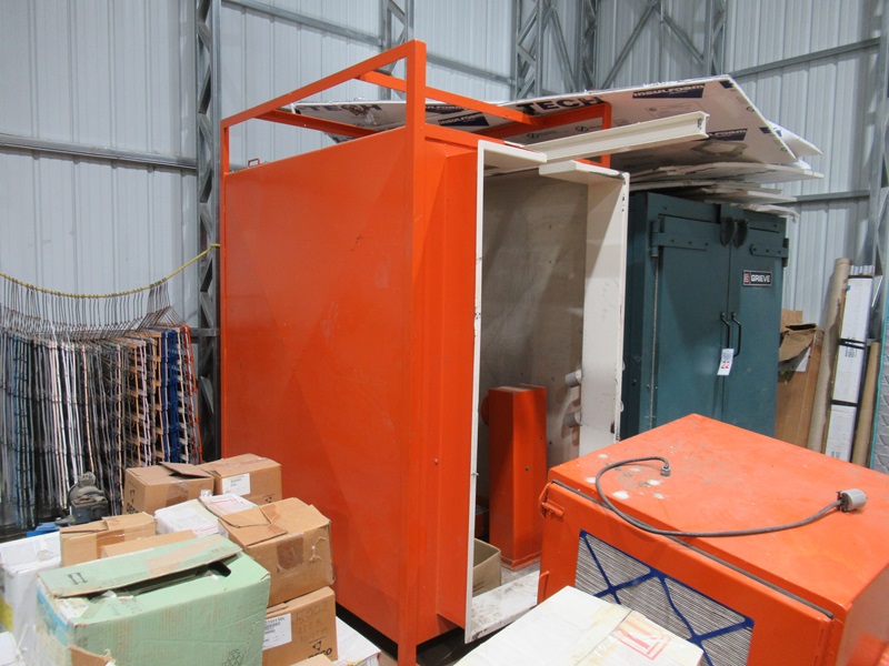 6-1/2'L X 48"W BACKDRAFT POWDER COATING BOOTH W/ADVANCED POWDER COATINGS IS1-S POWDER COATING SYSTEM & ACCESSORIES, 110/220V, 3 PHASE