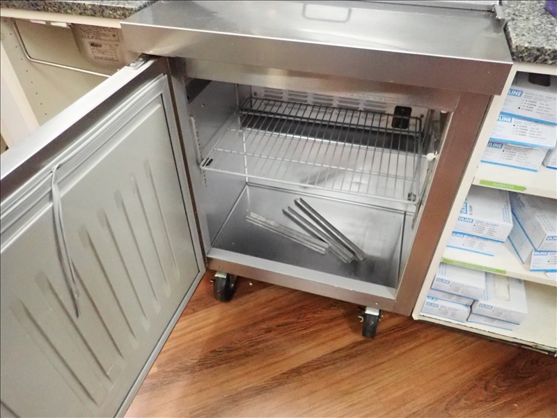 27" SINGLE DOOR REFRIGERATED PREP TABLE ON CASTERS