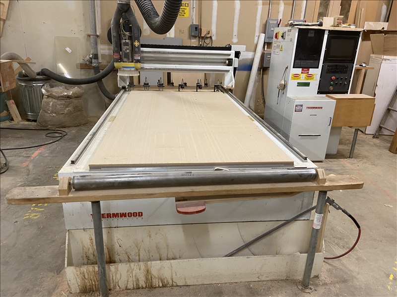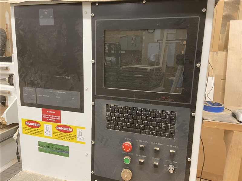 CNC 3-AXIS NESTING WOOD ROUTER W/4'X8' WORK SURFACE MOUNTED ON 10' BED, GEN2 SUPERCONTROL CONTROLS, 12.2 KW/17.7HP VACUUM PUMP; 460V, 3-PH