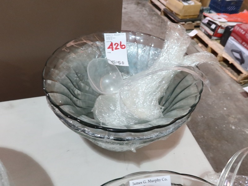 LOT, (3) GLASS PUNCH BOWLS W/(3) LADLES