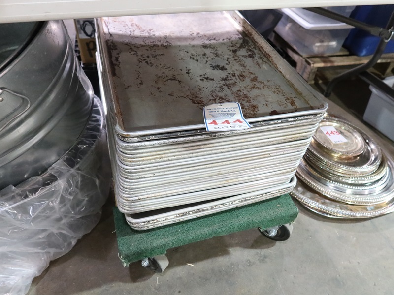 LOT, APPROX (28) ALUMINUM BAKING SHEETS W/DOLLY