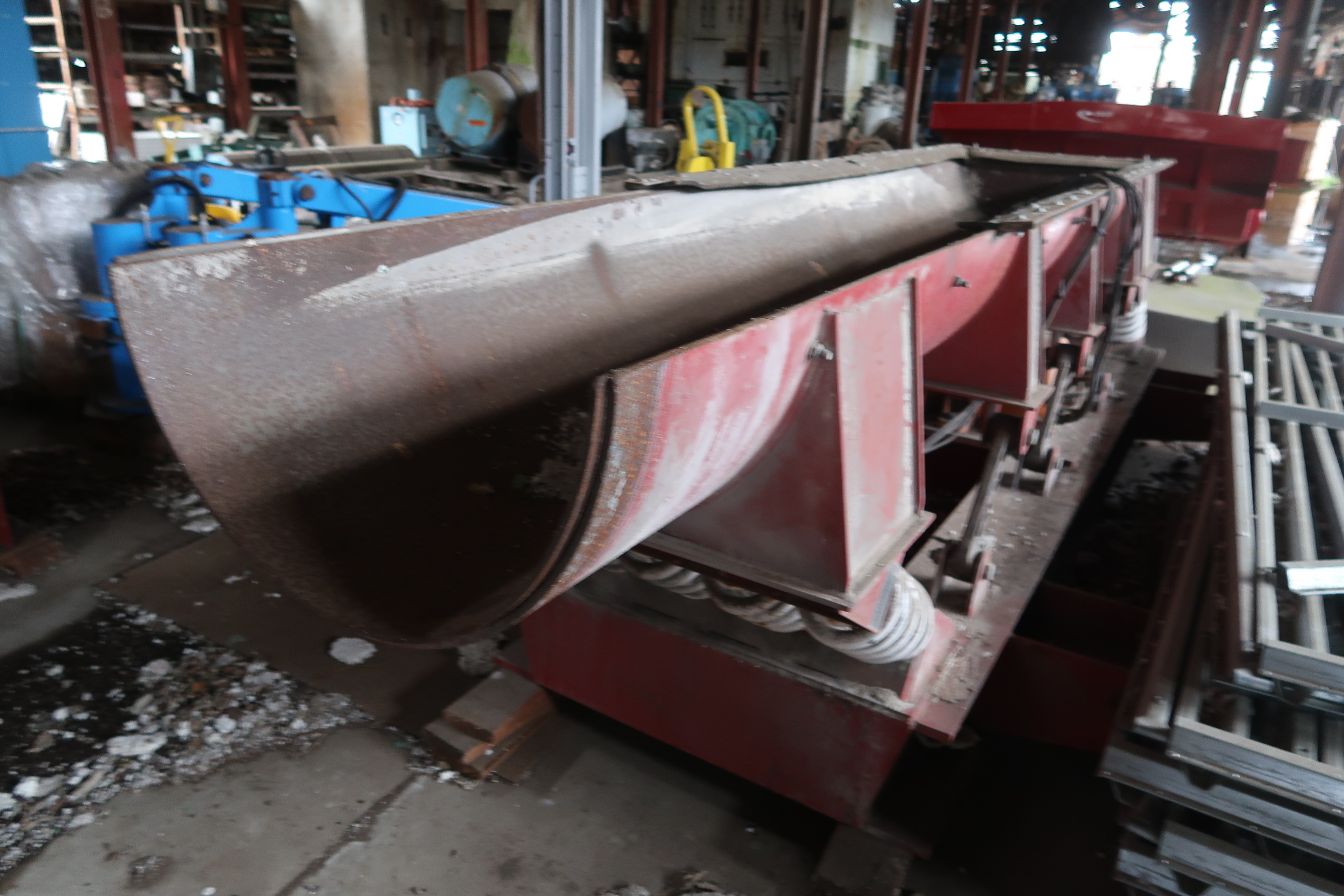 VIBRATORY FEEDER W/1/2 PIPE TROUGH, APPROX. 16"D X 32"W X 13'L W/1-1/2" STROKE, DRIVE MOTOR