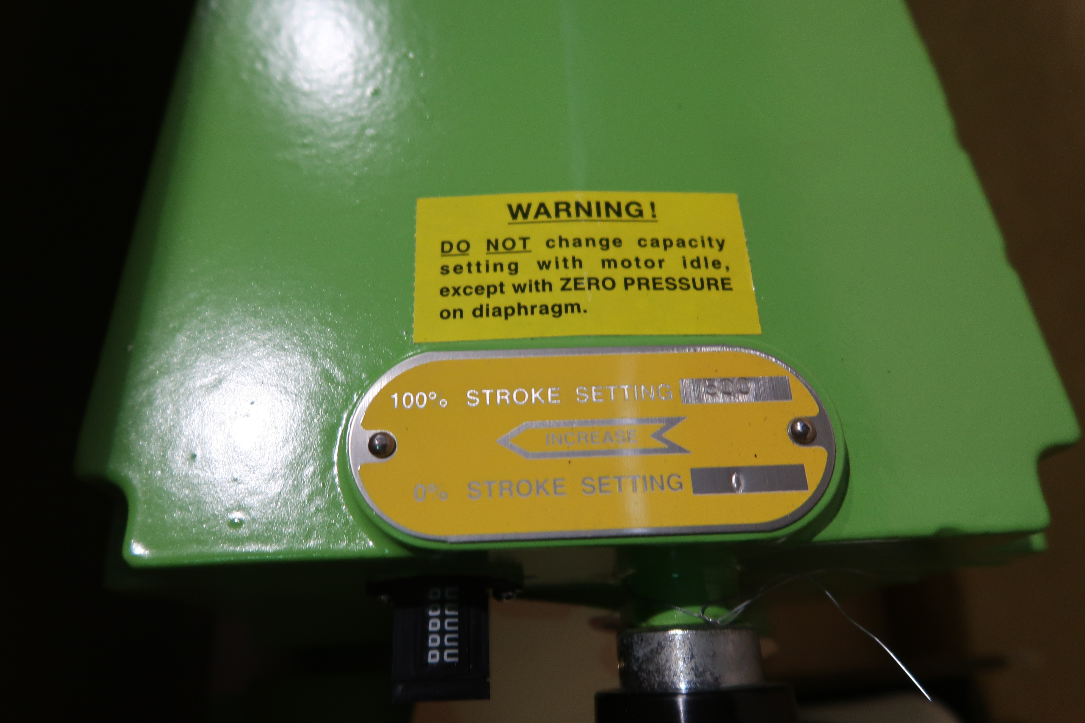 DIAPHRAGM METERING PUMP W/BALDOR/RELIANCE 2 HP MOTOR, 2" PISTON DIA., 116 SPM, 216 GPH