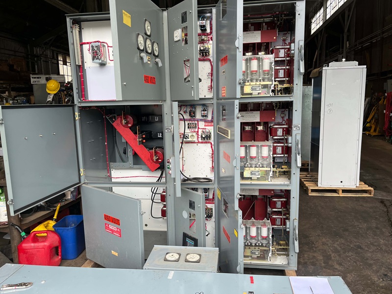 3-SECTION MAIN, 2,300V, 800 AMP, (3) 4,000 AMP CONTACTORS, (2) ALLEN BRADLEY 1406 PLC'S