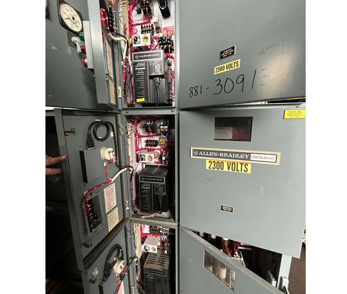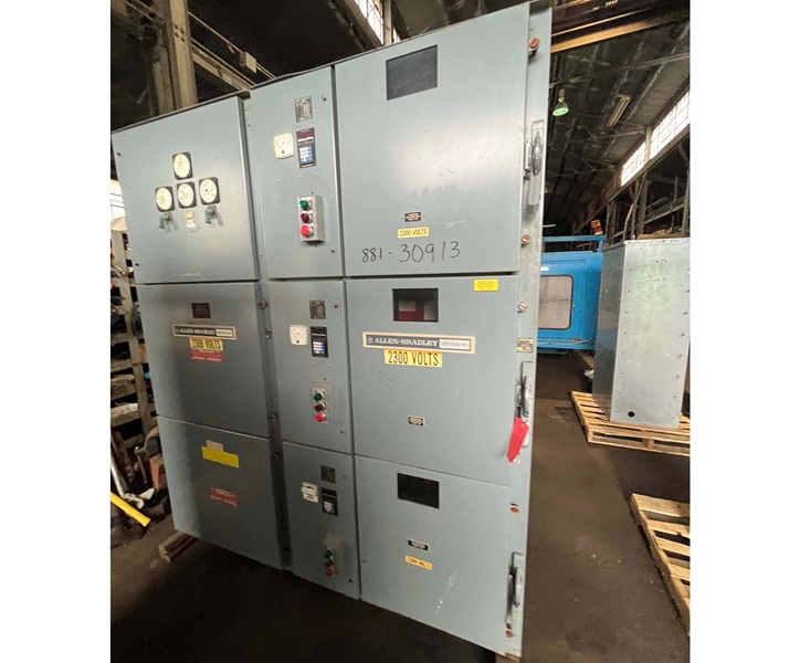 3-SECTION MAIN, 2,300V, 800 AMP, (3) 4,000 AMP CONTACTORS, (3) ALLEN BRADLEY 1406 PLC'S