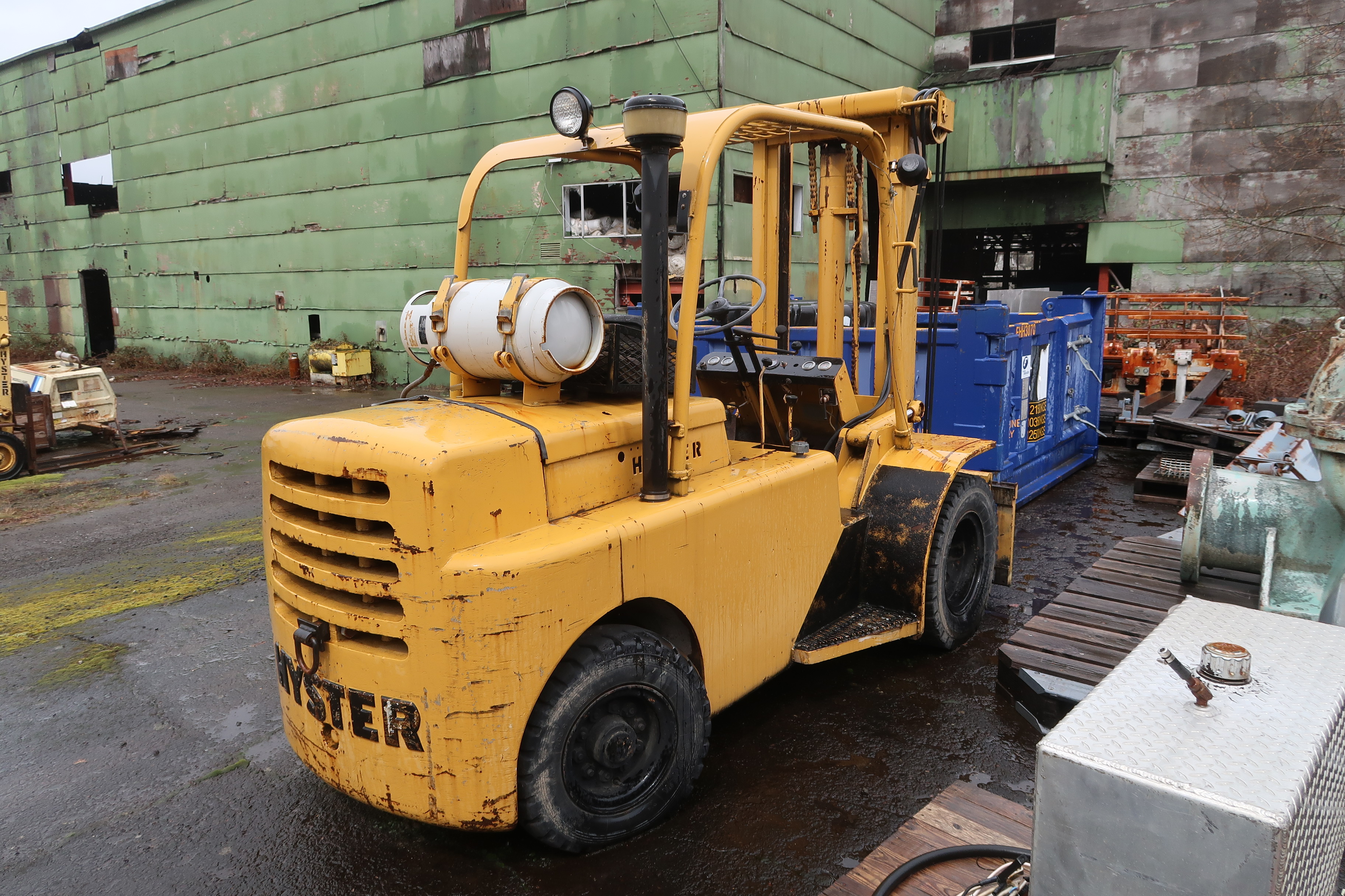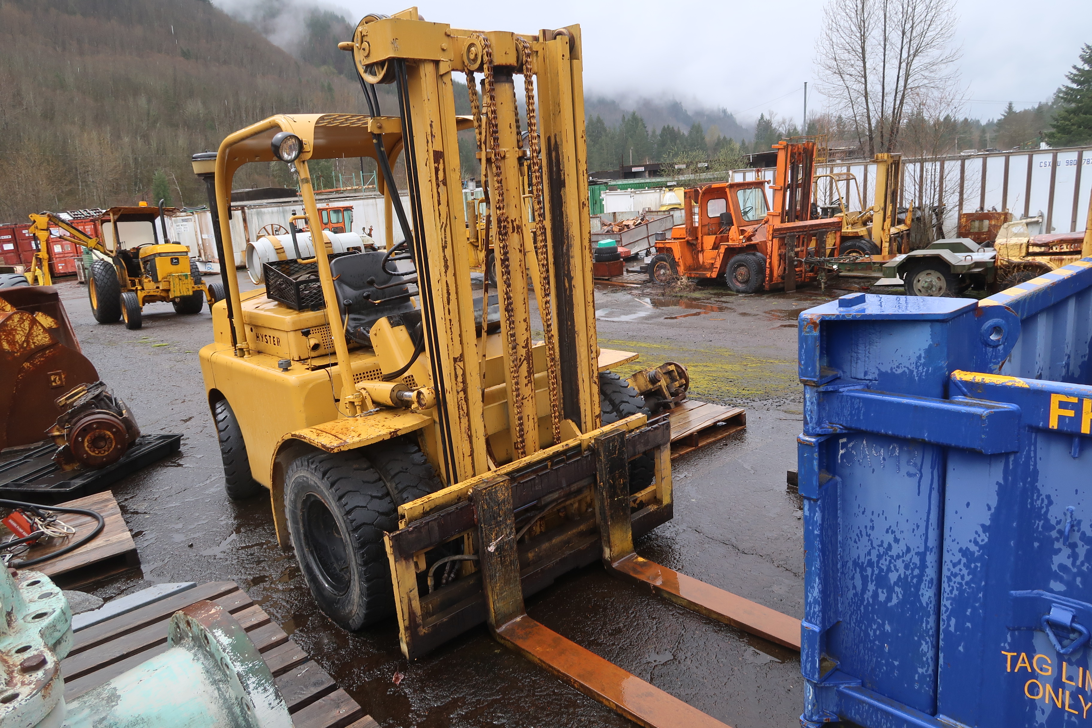 APPROX. 8,000 LB. CAPACITY PROPANE FORKLIFT, MANUAL TRANSMISSION, 2-STAGE MAST, DUAL PNEUMATIC TIRES (NO DATA PLATE)