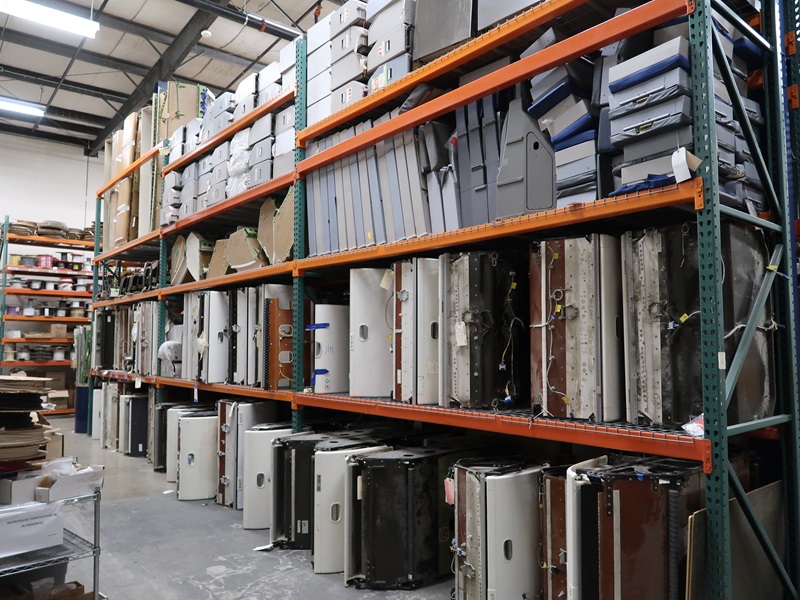 LARGE ASSORTMENT OF AIRCRAFT INTERIOR OVERHEAD BIN COMPONENTS