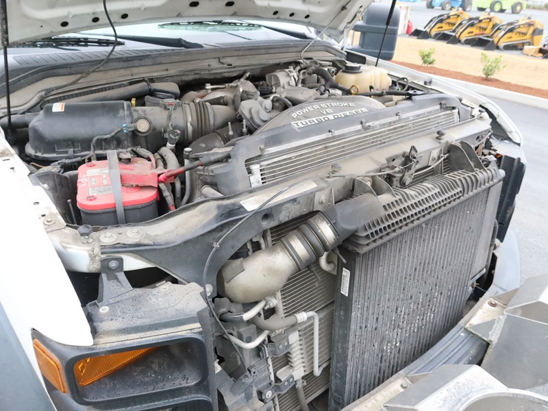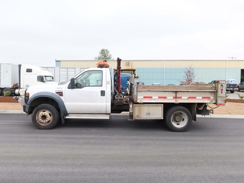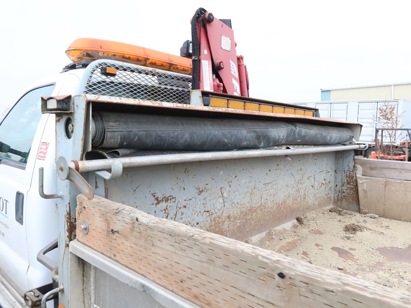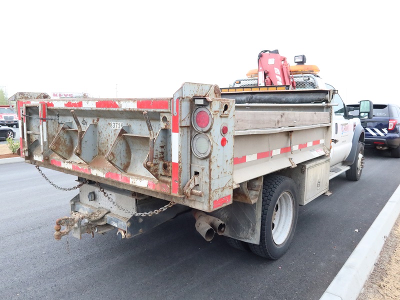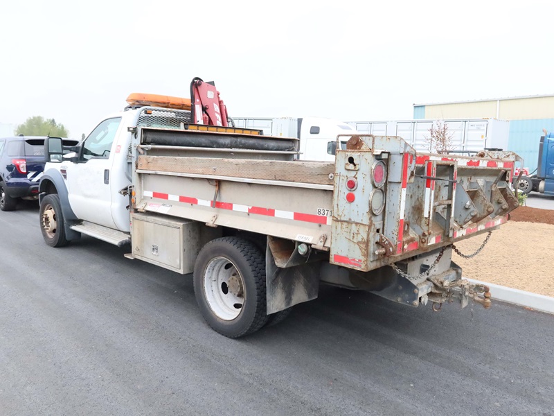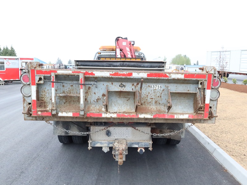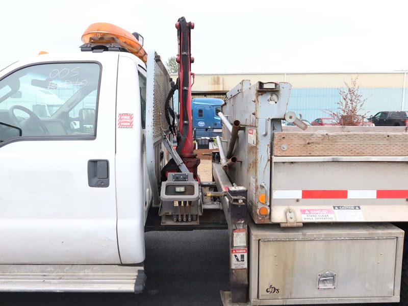 DUMP TRUCK, 8' STEEL BOX, TARP SYSTEM, POWER STROKE, AUTO, FERRARI HYD CRANE, OUTRIGGERS