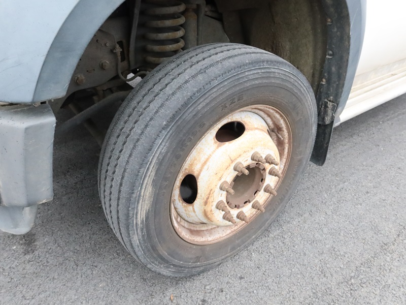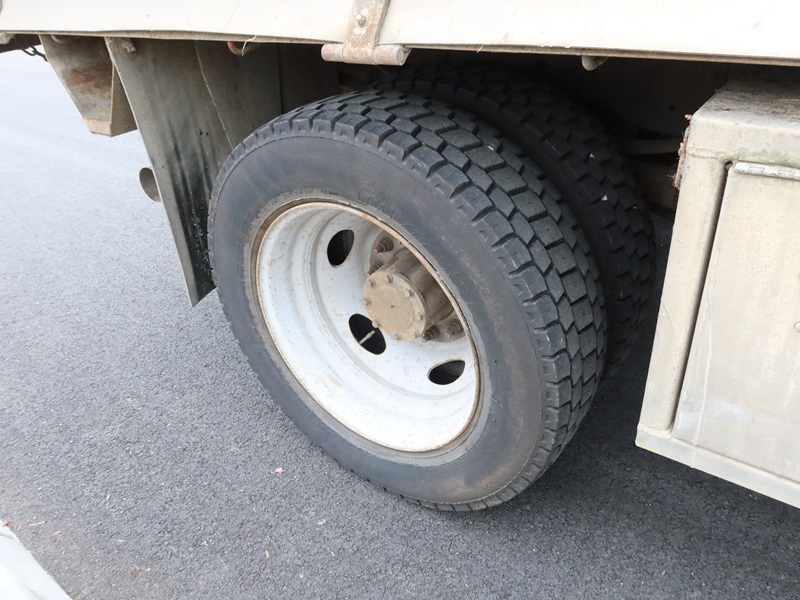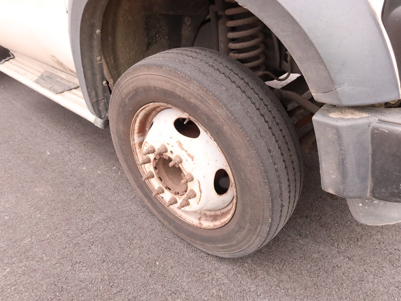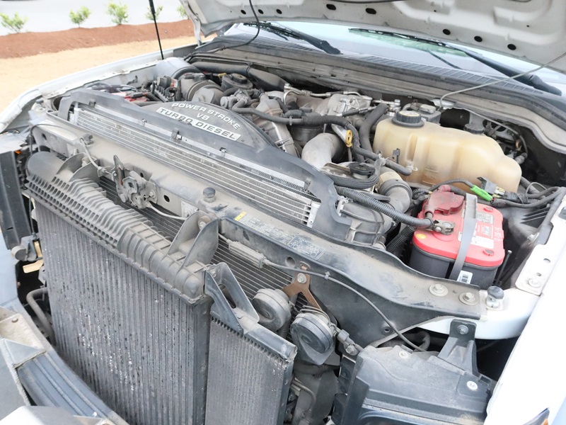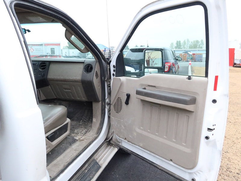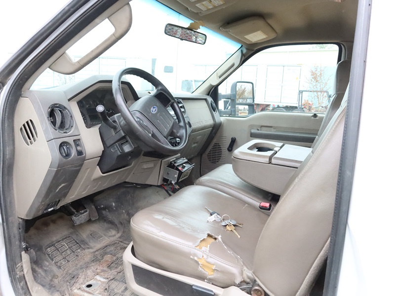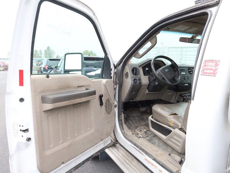 DUMP TRUCK, 8' STEEL BOX, TARP SYSTEM, POWER STROKE, AUTO, FERRARI HYD CRANE, OUTRIGGERS