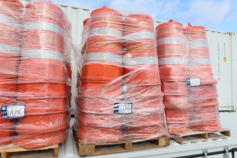 LOT, ASSORTED REFLECTIVE TRAFFIC BARRELS ON THIS PALLET