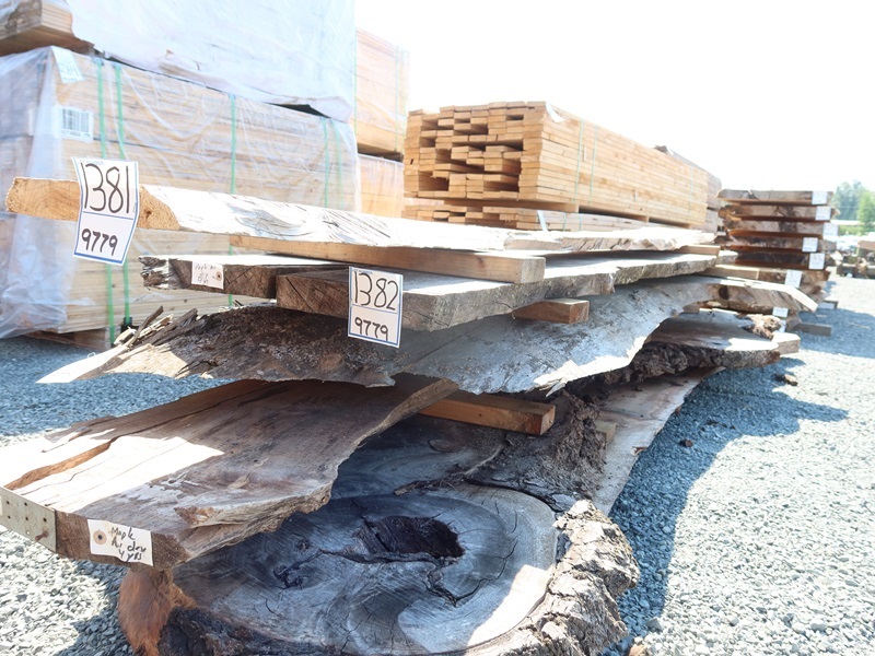 2" X 128" 4 YR AIR DRY LIVE EDGE MAPLE SLAB (LARGE END 22", SMALL END 20", MEASUREMENTS ARE APPROXIMATE)
