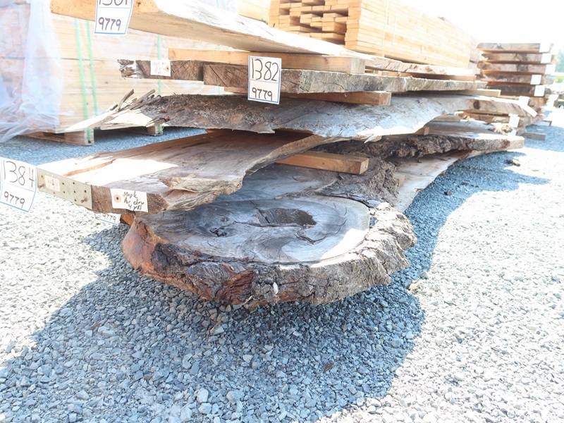2" X 130" 4 YR AIR DRY LIVE EDGE MAPLE SLAB (LARGE END 19", SMALL END 14", MEASUREMENTS ARE APPROXIMATE)