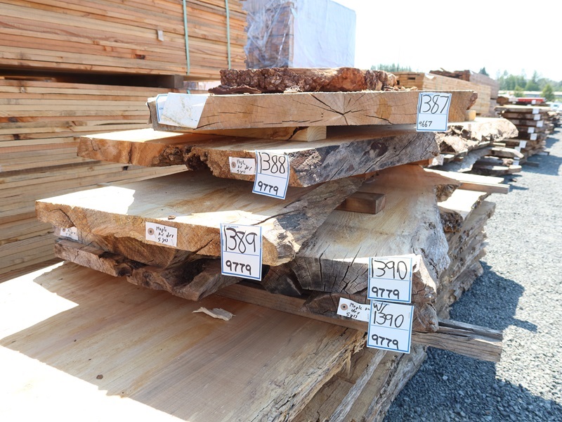 2" X 82" 5 YR DRY LIVE EDGE MAPLE SLAB (LARGE END 23", SMALL END 13", MEASUREMENTS ARE APPROXIMATE, SOME ROT, PLEASE PREVIEW)