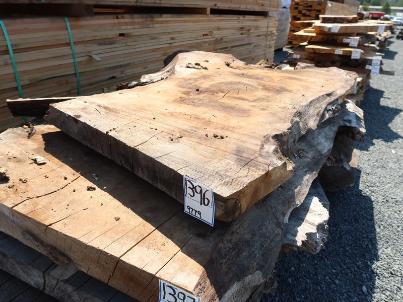3" X 69" 3 YR AIR DRY LIVE EDGE WALNUT SLAB (LARGE END 49", SMALL END 30", MEASUREMENTS ARE APPROXIMATE, SOME ROT, PLEASE PREVIEW)