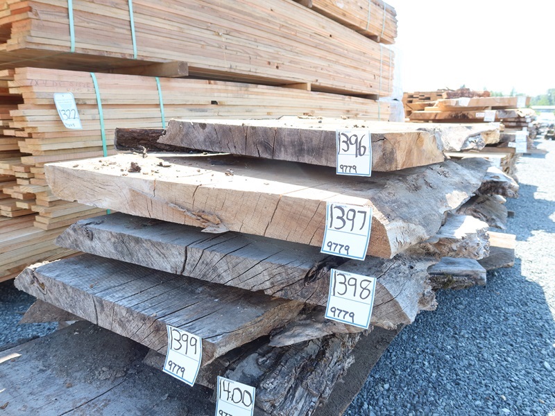 3-1/4" X 74" 4 YR AIR DRY LIVE EDGE MAPLE SLAB (LARGE END 34", SMALL END 33", MEASUREMENTS ARE APPROXIMATE, SOME ROT, PLEASE PREVIEW)