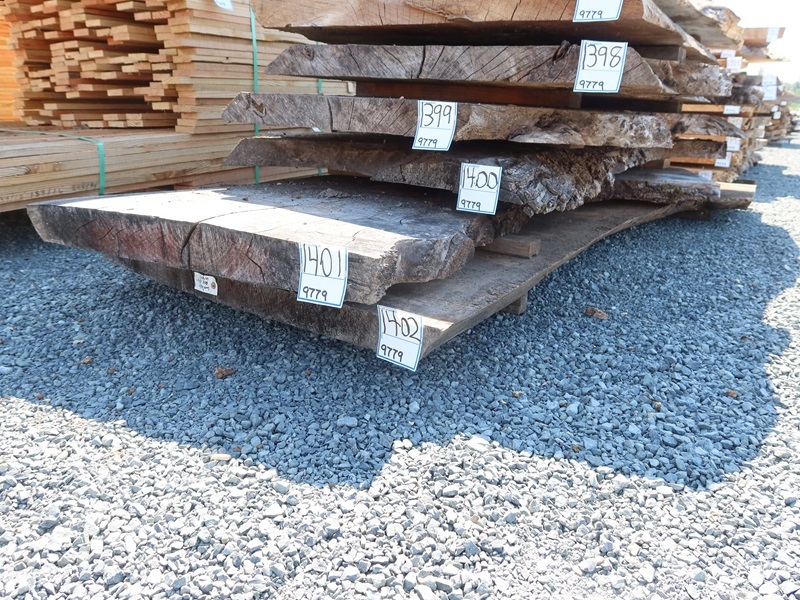 2-1/2" X 104" 4 YR AIR DRY LIVE EDGE WALNUT SLAB (LARGE END 52", SMALL END 39", MEASUREMENTS ARE APPROXIMATE)