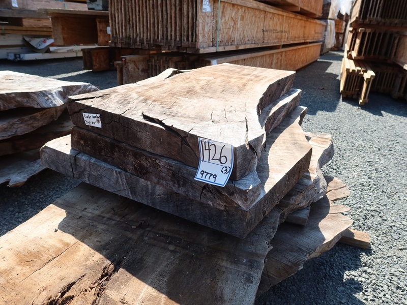 LOT, (2) 3" X 41" & (1) 3" X 39" 3 YR AIR DRY LIVE EDGE CURLY WALNUT SLABS