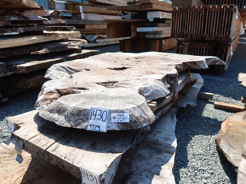3" X 59" 4 YR AIR DRY LIVE EDGE MAPLE SLAB (LARGE END 46", SMALL END 24", MEASUREMENTS ARE APPROXIMATE)