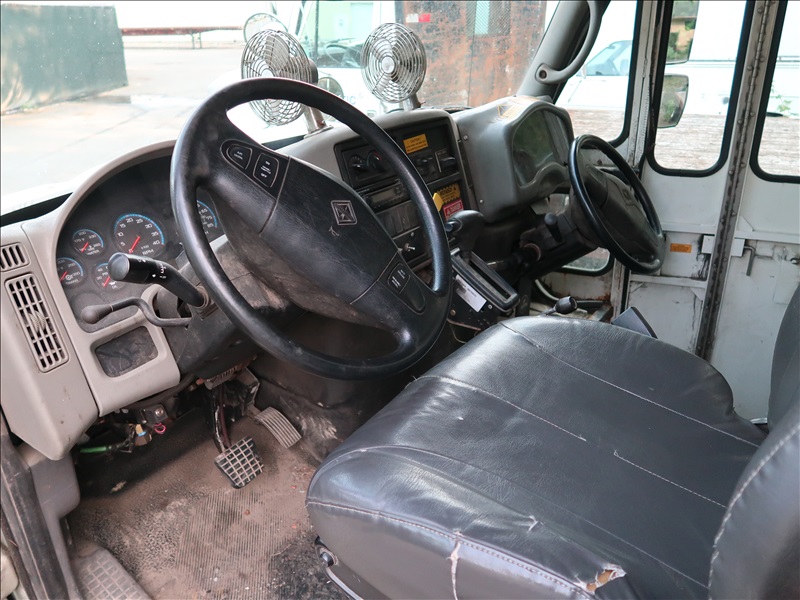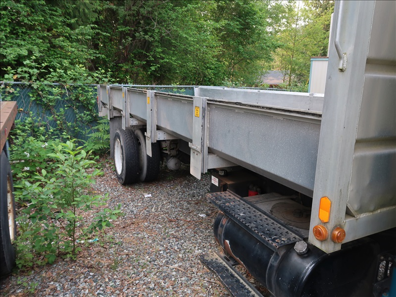 21' FLATBED DUMP TRUCK, DUAL STEERING WHEELS, AUTO, A/C, DIESEL ENGINE, AIR BRAKES
