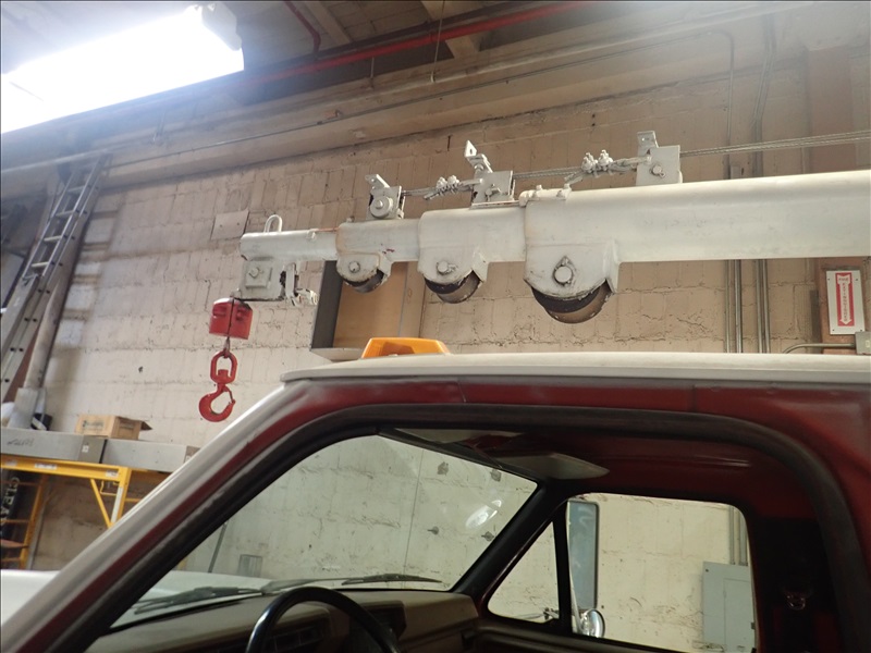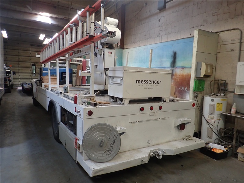 SIGN TRUCK, V8, GAS, 10 SPD, GARLAND 64 JR GOLIATH 1,550 LB CAP. CRANE (NEEDS NEW BEARING), MILLER BLUE CHARGER GAS WELDER/GENERATOR, TRUCK BOX, RACKS, S/N: 1FDNF60H4LVA01216, MILES: 185,300