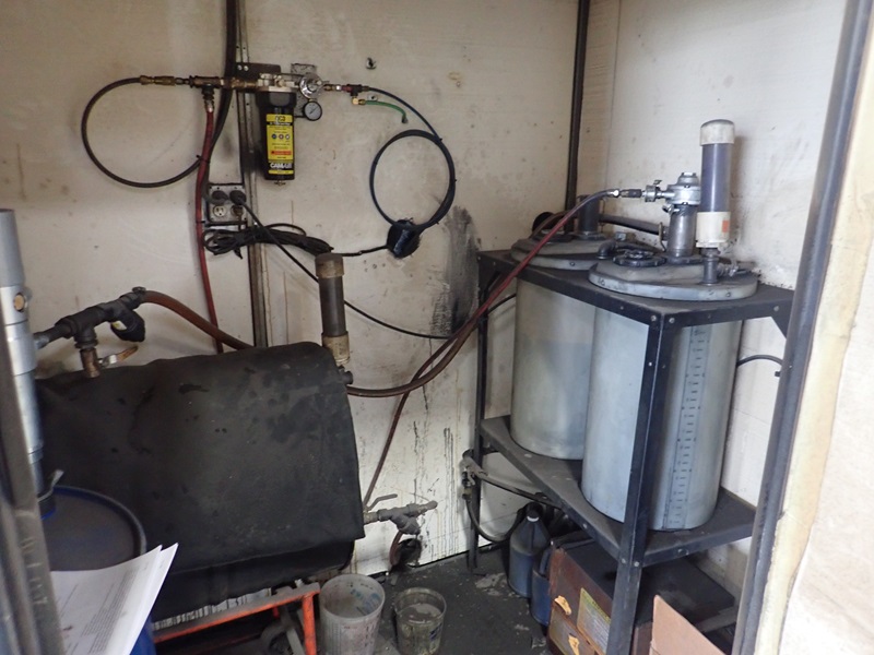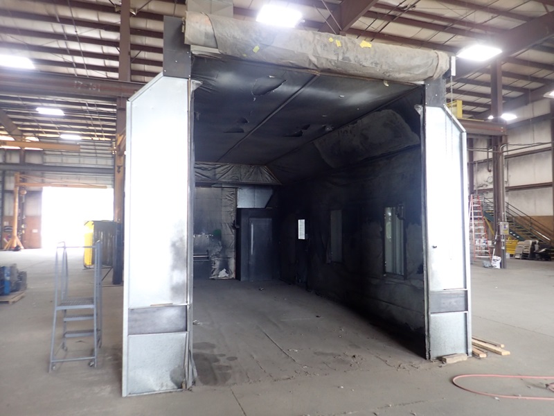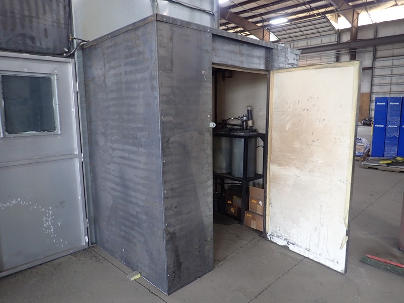 APPROX. 14'X28'X12' DRIVE IN SPRAY BOOTH, ROLL UP DOOR, LIGHTS, MAN DOOR, HEATED STORAGE ROOM, 2-PART SPRAY SYSTEM