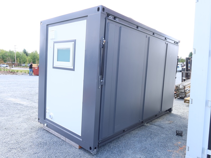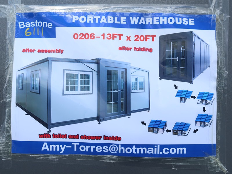 13' x 20' PORTABLE WAREHOUSE W/TOILET, SHOWER, WINDOWS, DOORS & ROLL OFF BASE