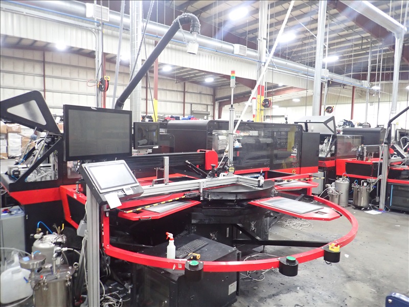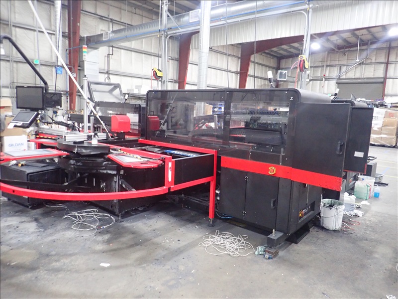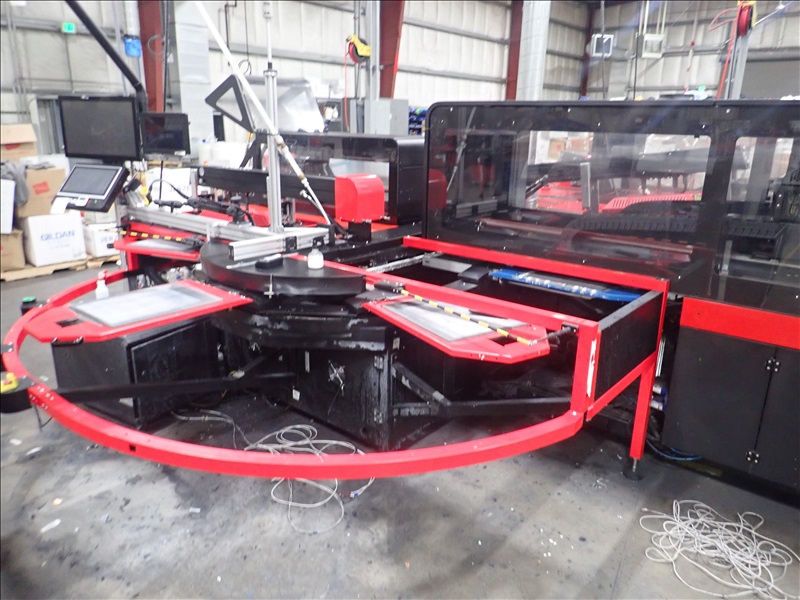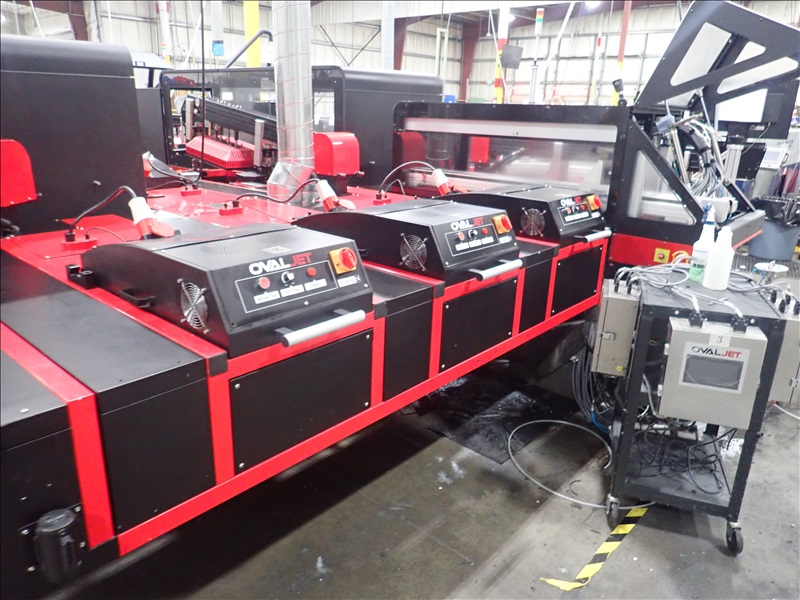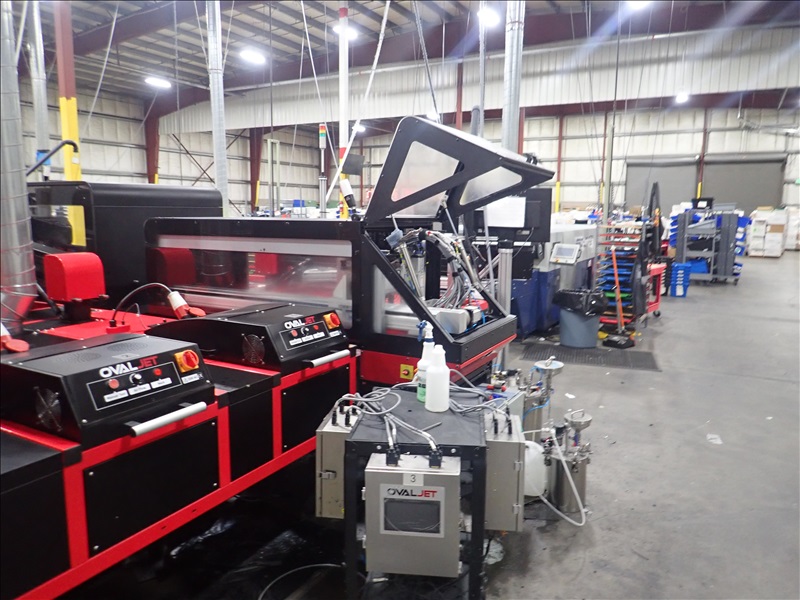 HIGH SPEED DTG & SCREEN PRINTER, OVALJET CLOSED LOOP TECH, 14 AUTOMATED STATIONS, DTG SPEED OF 240 PRINTS PER HOUR, 7 COLOR INK SET, IN-LINE NECK PRINTING, TURBINE ENTERPRISE SOFTWARE, HEAD HEIGHT SENSOR, SMART PRESS & CURE