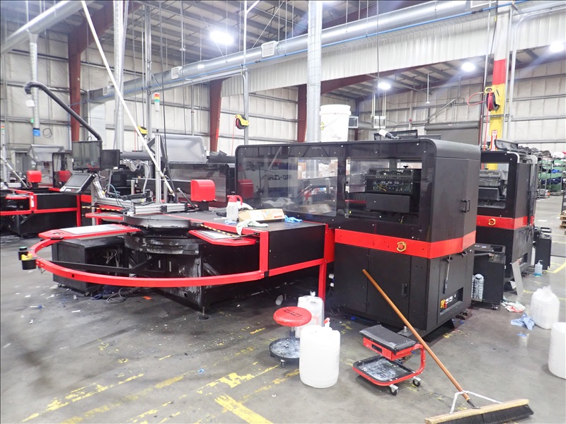 HIGH SPEED DTG & SCREEN PRINTER, OVALJET CLOSED LOOP TECH, 14 AUTOMATED STATIONS, DTG SPEED OF 240 PRINTS PER HOUR, 7 COLOR INK SET, IN-LINE NECK PRINTING, TURBINE ENTERPRISE SOFTWARE, HEAD HEIGHT SENSOR, SMART PRESS & CURE