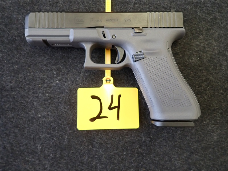9MM 4.5" PISTOL, GLOCK FACTORY GREY FRAME/BLACK NITRIDE SLIDE, (3) 10 ROUND MAGAZINES