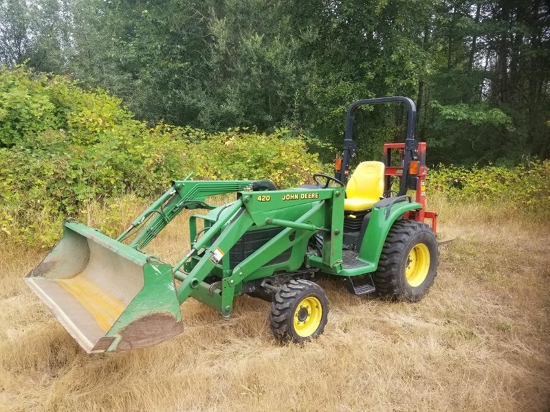 JOHN DEERE TRACTOR W/LOADER & FORKLIFT ATTACHM...