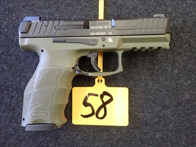 9MM 4" PISTOL, OLIVE DRAB GREEN, (3) 10 ROUND MAGAZINES, BACK STRAPS