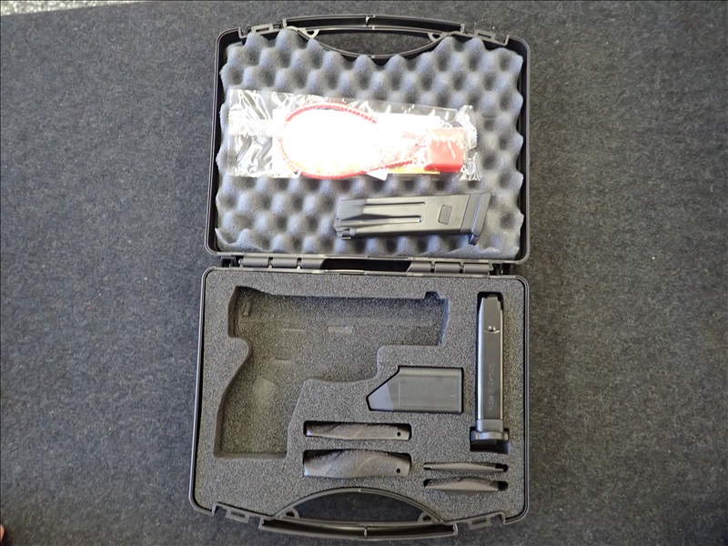 9MM 4" PISTOL, NIGHT SIGHTS, (3) 10 ROUND MAGAZINES, BACK STRAPS